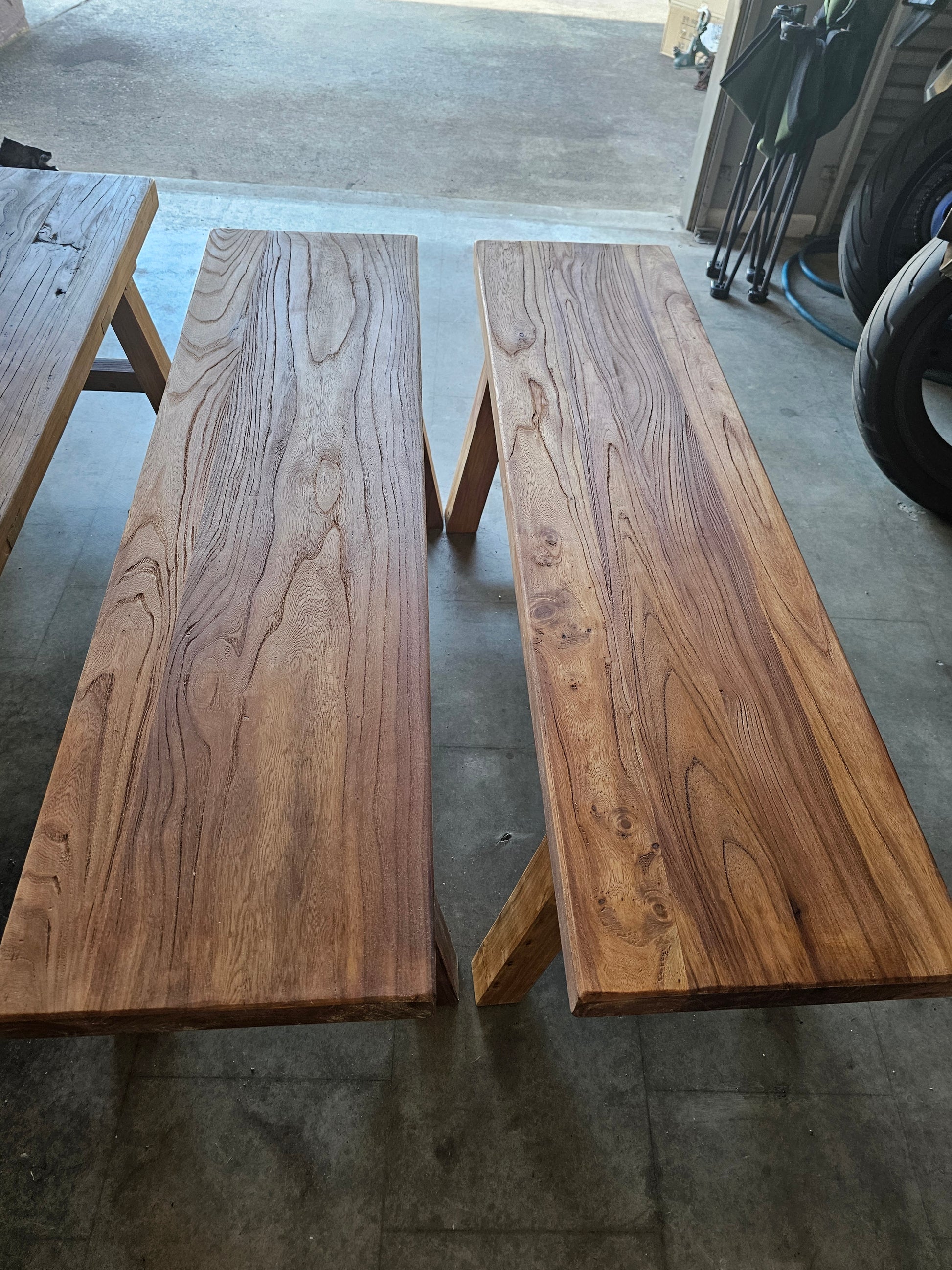 Each bench seat varies slightly due to the characteristics of elm wood.
