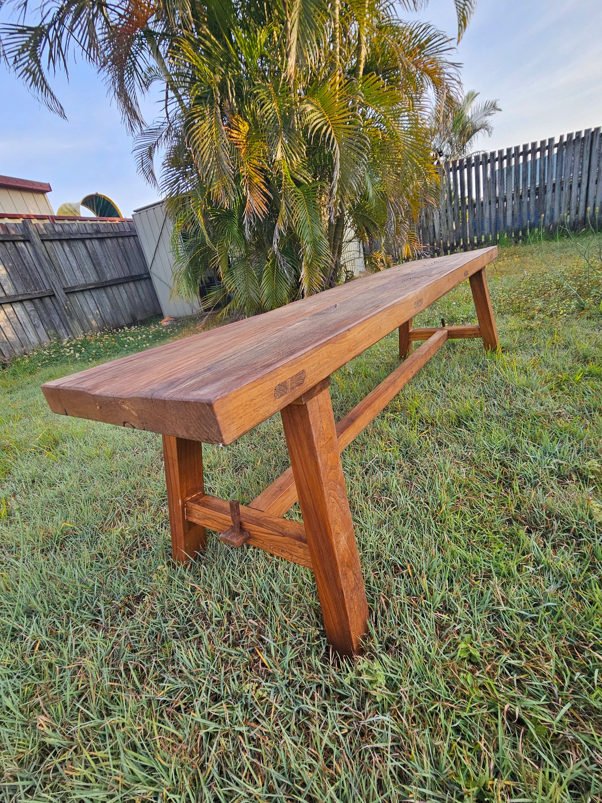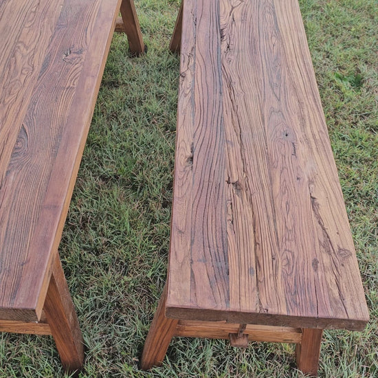 Each bench seat varies slightly due to the characteristics of elm wood.